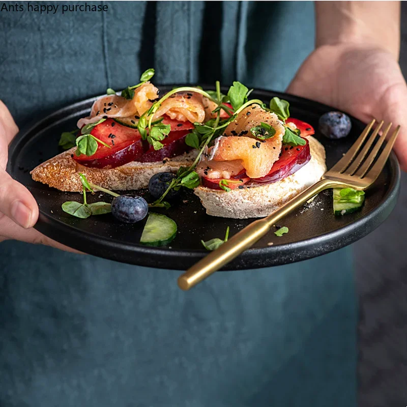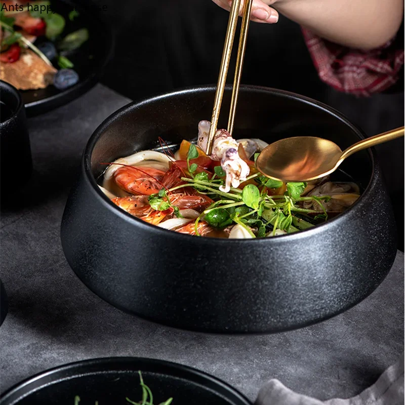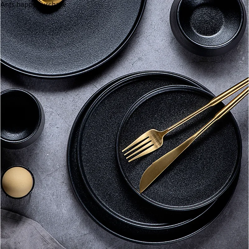 Title: black ceramic tableware dinner plates rice bowls noodle bowl soup bowl salad bowls western plate Steak Plates dishes pasta plate