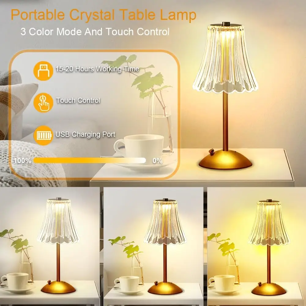Touch the crystal lamp to switch between white, warm, and daylight, with each color changing from dark to bright.